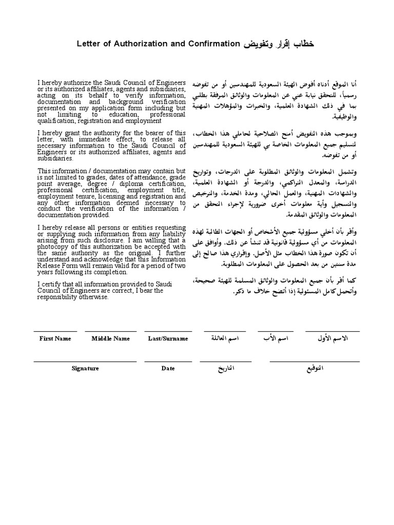 Letter Authorization This you can download from the SCE website online and fill SCE Letter of Authorization. Saudi council of engineers authorization letter. Registration for SCE exams.